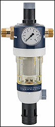 Schmutzstoffe werden zurückgehalten und ausgewaschen ohne die Filterpatrone zu wechseln, die aus rostfreiem Edelstahl gefertigt ist. Die spezielle Rückspülturbine sorgt für optimale Spülgeschwindigkeiten und -zeiten, um Verunreinigungen auszuspülen. Bei der halbautomatischen Version wird die Rückspülung durch einen Drehknopf unterhalb der Filterglocke gestartet. Bei automatischen Modellen startet eine Zeitschaltuhr (programmierbar für 2, 24 oder 68 Std.) automatisch den Spülvorgang.